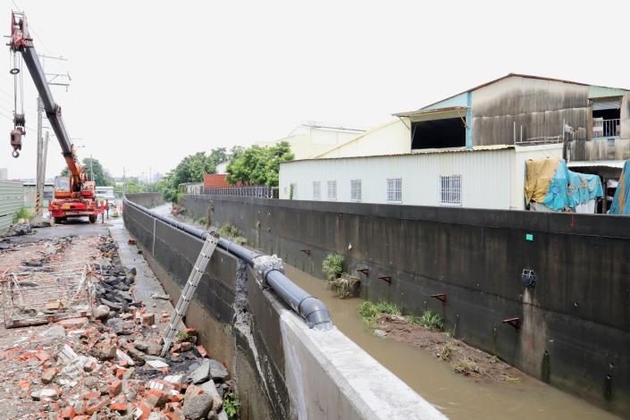 另針對仁德排水護岸下陷損壞,水利局簡報說明,致災原因初步研判是因仁德排水既有護岸施作逾20年,結構老舊,再加上護岸被高漲的水位不斷沖刷,才造成堤防滑動、護岸基礎遭掏空、防汛道路龜裂下陷等情形。