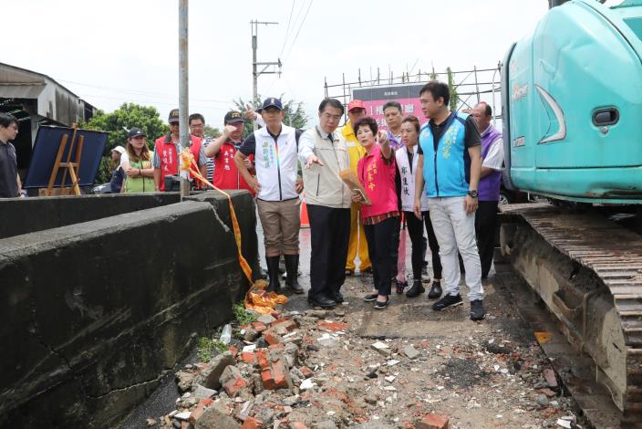目前水利局已立即指派合約廠商進場搶修,先打設13米板樁,防止護岸持續傾斜,防汛道路部分則先局部開挖下陷位置再直接灌漿回填,應急處理。水利局表示,預計10天內完成初步的搶修工程,先保護、降低當地民眾的生命財產損失,後續會提報災修工程,於汛期後進行局部護岸重新施作。