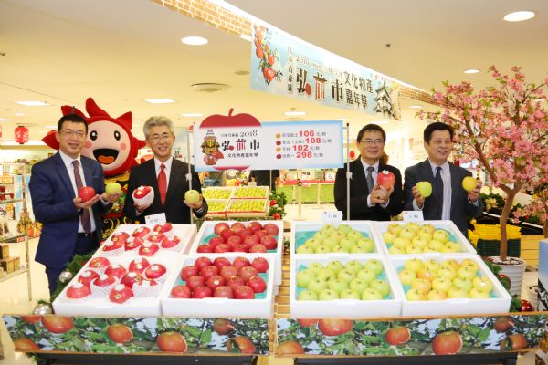 台南市友好城市─蘋果產量居全日本之冠的青森縣弘前市,在新任市長櫻田宏市長率隊下,今(15)日開始在台南大遠百展開「2018日本青森縣弘前市文化物產嘉年華」。台南市長李孟諺、新聞及國際關係處許淑芬處長、農業局李建裕局長也出席開幕式,為台南友好城市相挺加油。