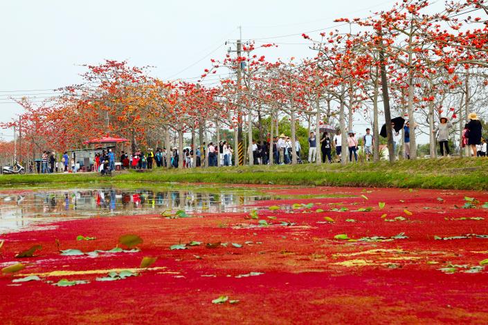 白河「林初埤木棉花道」被譽為世界最美花海街道之一,搭配「滿江紅」蓮花田的奇特景緻,形成「雙紅輝映」,在網路上造成轟動,吸引大批遊客前往打卡拍照。