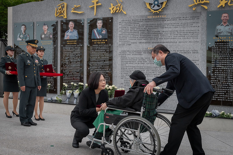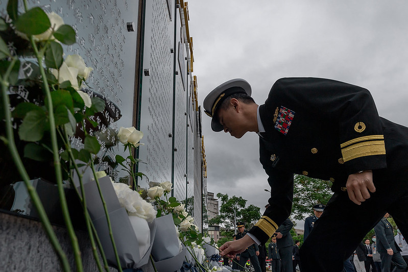 最後,總統也仰天向八位殉職將士們說,「你們的犧牲奉獻,我跟大家都會牢記在心,你們的理想與期待,我會帶著大家,我們奮力實現」。