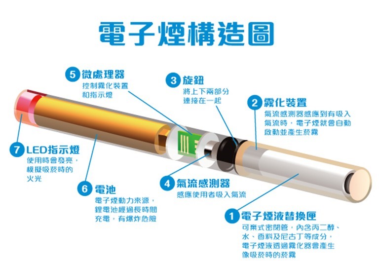 近年來,新興產品「電子煙」在年輕族群間流竄,草苺、薄荷、香蕉、啤酒…等各式各樣五花八門的口味,吸引年輕人嚐鮮,然而這看似無害的煙霧裡,其實暗藏不少安全隱憂。