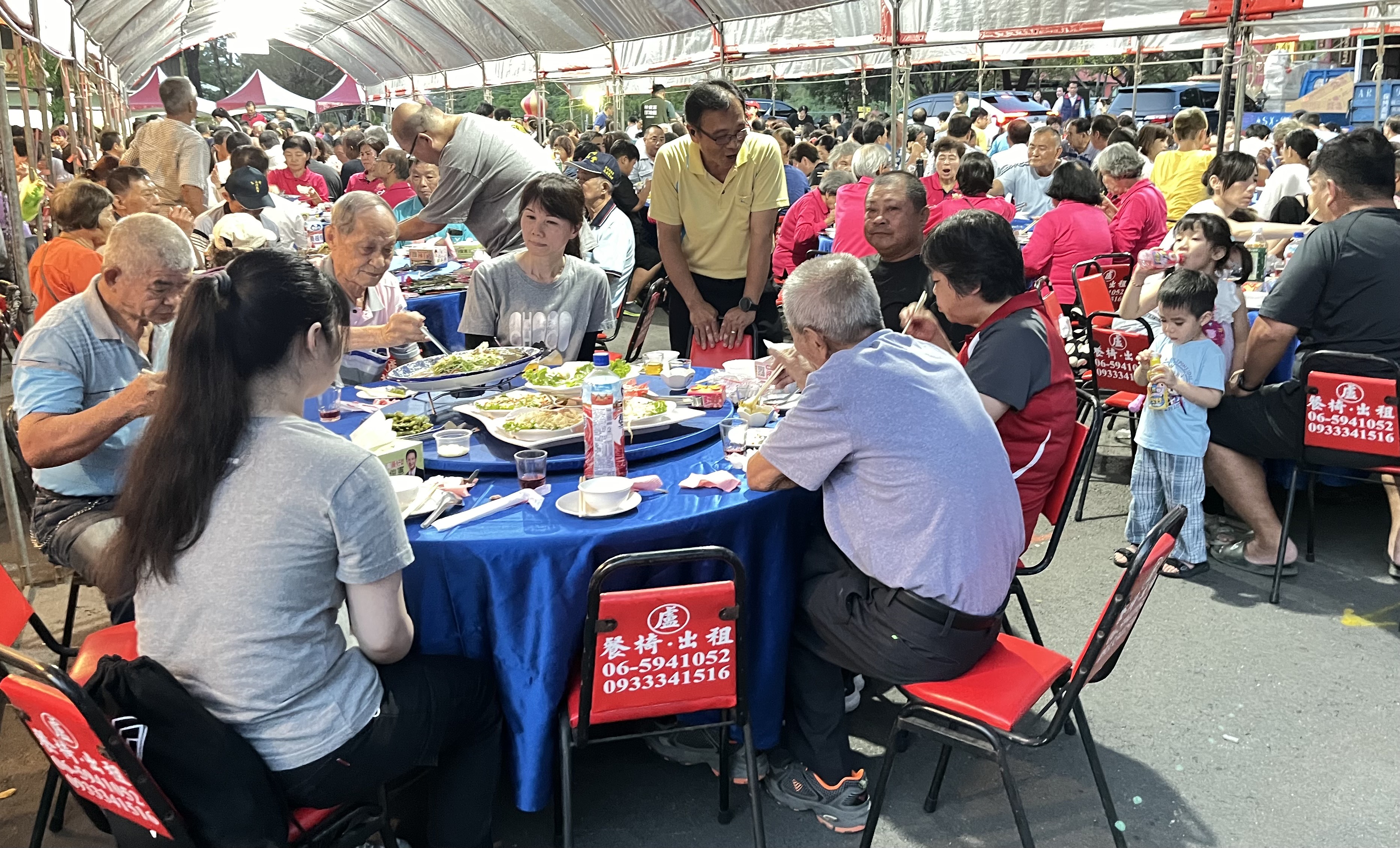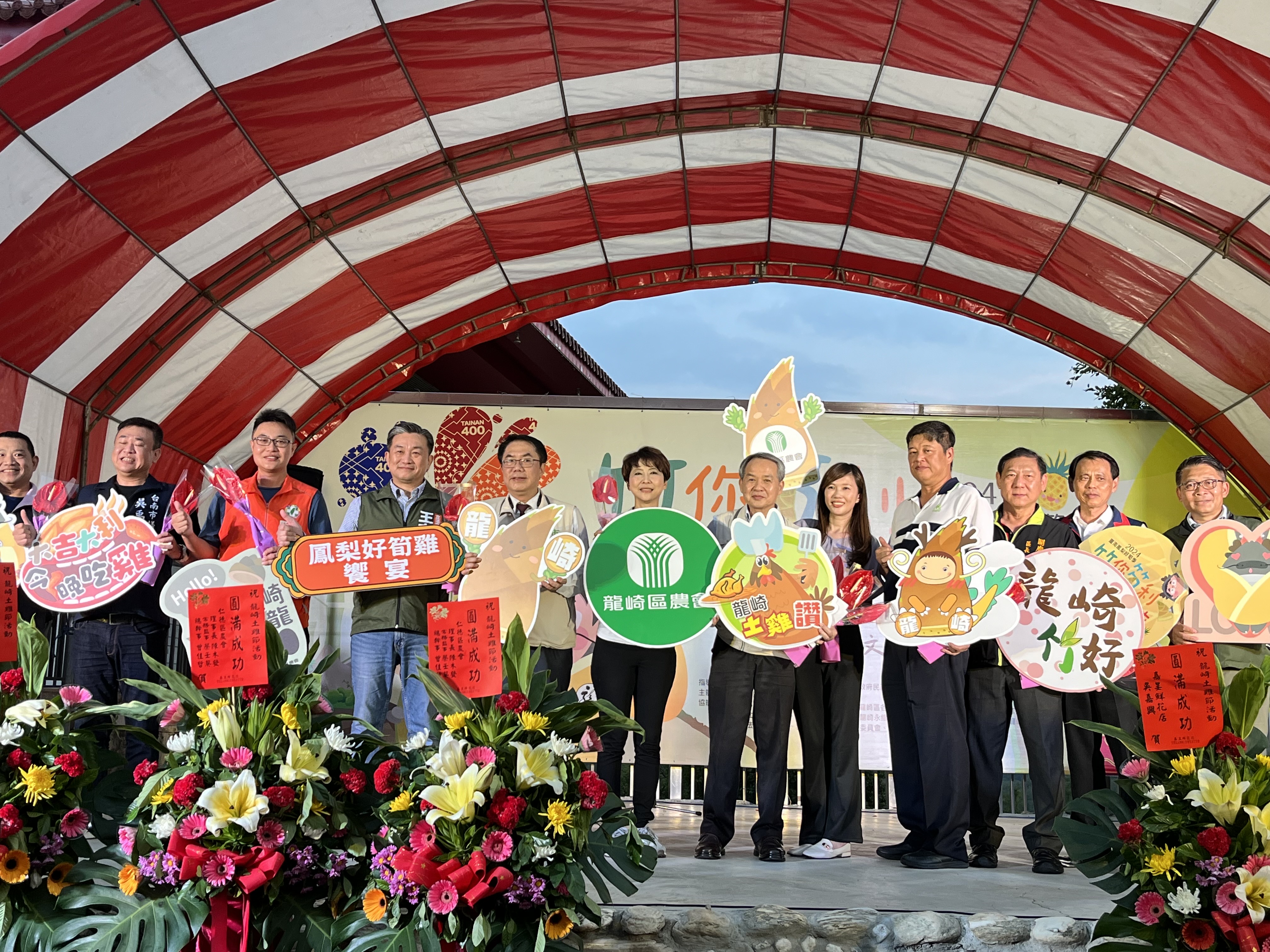 農業局長李建裕指出,本市今年鳳梨預估收穫面積970公頃,約占全台14.5%,是全台第二大產區,產量52,000公噸,其中龍崎區預估收穫面積78公頃,產量3,880公噸;本市竹筍種植面積3,606公頃,產量約35,397公噸,其中龍崎區種植面積276公頃,產量1,911公噸;本市肉雞場約579場,飼養隻數約838萬隻,居全國第二,其中龍崎土雞飼養場數為26場,在養量約23萬隻,亦是本市重要土雞飼養區。今年饗宴由在地李榮東總舖師、黃永順總舖師及盧正治總舖師共同打造,席開200桌,集結最具特色的在地食材,讓遊客能闔家共度美好佳節,也歡迎大家把握當季農產最佳賞味期,共同支持臺南農產好滋味。