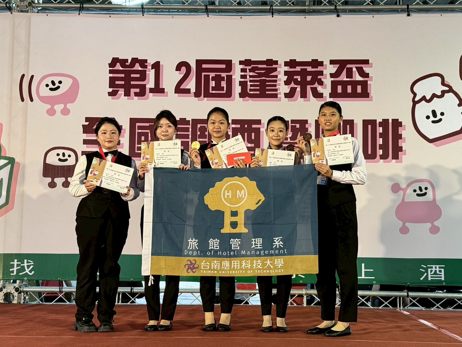 台南應用科技大學旅館管理系在此次賽事中表現傑出,在謝才智老師的悉心指導下,選手們憑藉紮實的專業訓練與穩健的台風,在托盤競賽組中榮獲一面金牌及三面銅牌的優異成績,展現旅館管理系學生的高水準專業能力與團隊默契。