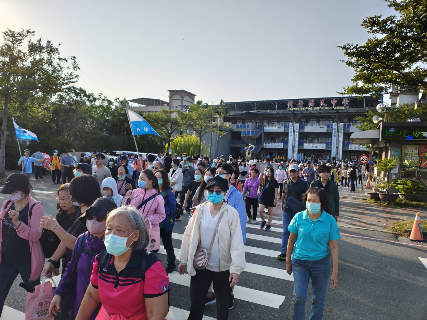 隨後,健走即在總裁郭宗正、院長鄭雅敏等人率領出發,從安平國中左轉沿慶平路運河旁、安億橋、漁人碼頭、大魚的祝福、港濱歷史公園區內步道,在歷史紋繪聽見廣場折返沿大魚的祝福、漁人碼頭、安億橋原路返回到安平國中,全程約3公里。在天候涼爽下健走回來的參與者,每人領得禮券而興奮不已,使得現場熱鬧非凡。
