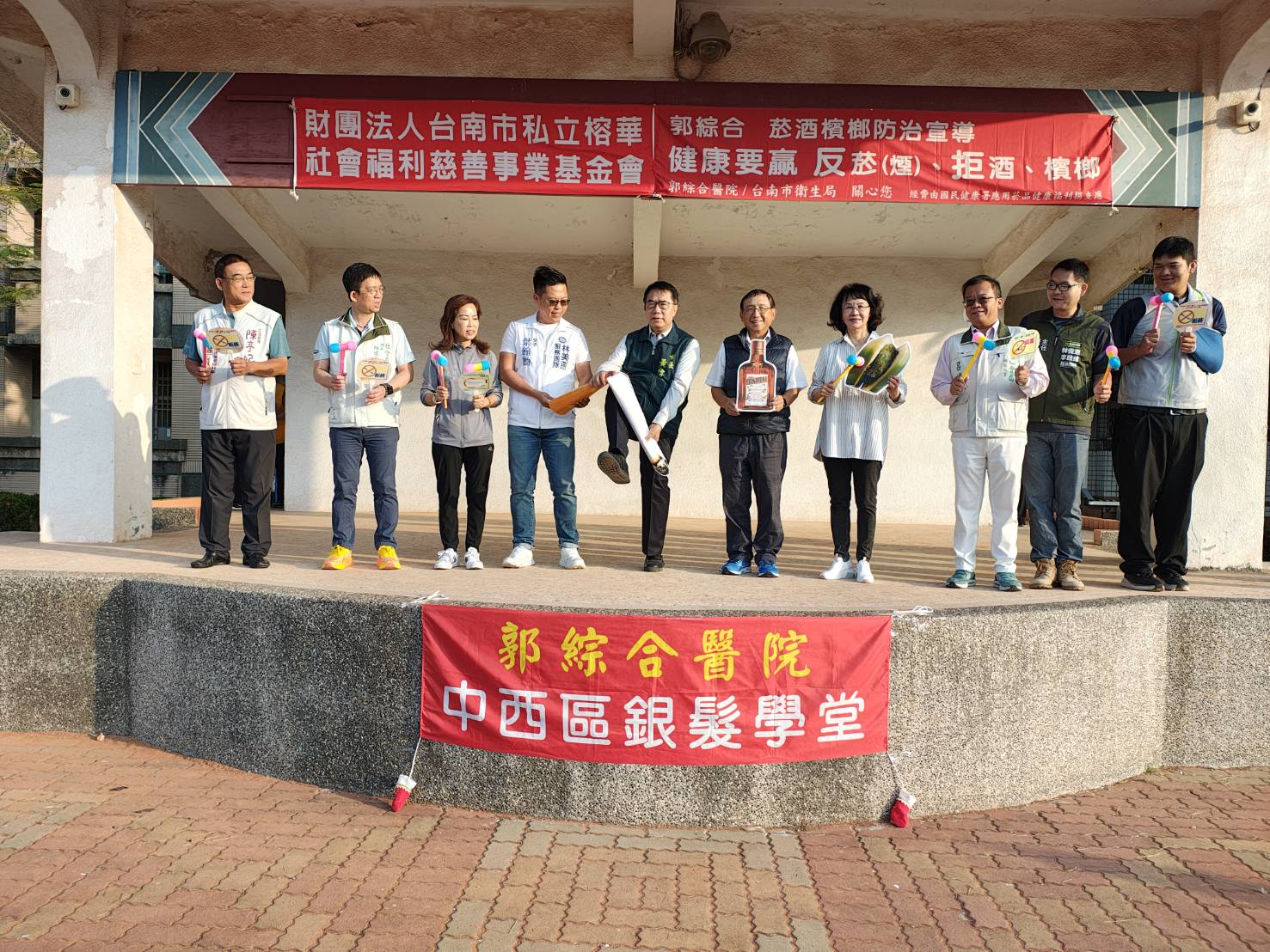 這項健走活動在安平國中及運河旁熱烈展開,院內員工、志工及家屬,還有失智友善人士藉運動活絡筋骨,並趁機聯誼、以增進彼此的情誼,他們一報到後,由總裁郭宗正、鄭雅敏與到場的衛生局主秘陳淑娟、安平國中校長陳柏蒼及民意代表等貴賓領銜下,和黃市長共同宣導拒絕菸、酒、檳榔後,所有參加者,在復健治療師王靜玉帶領下先做健康操暖身。