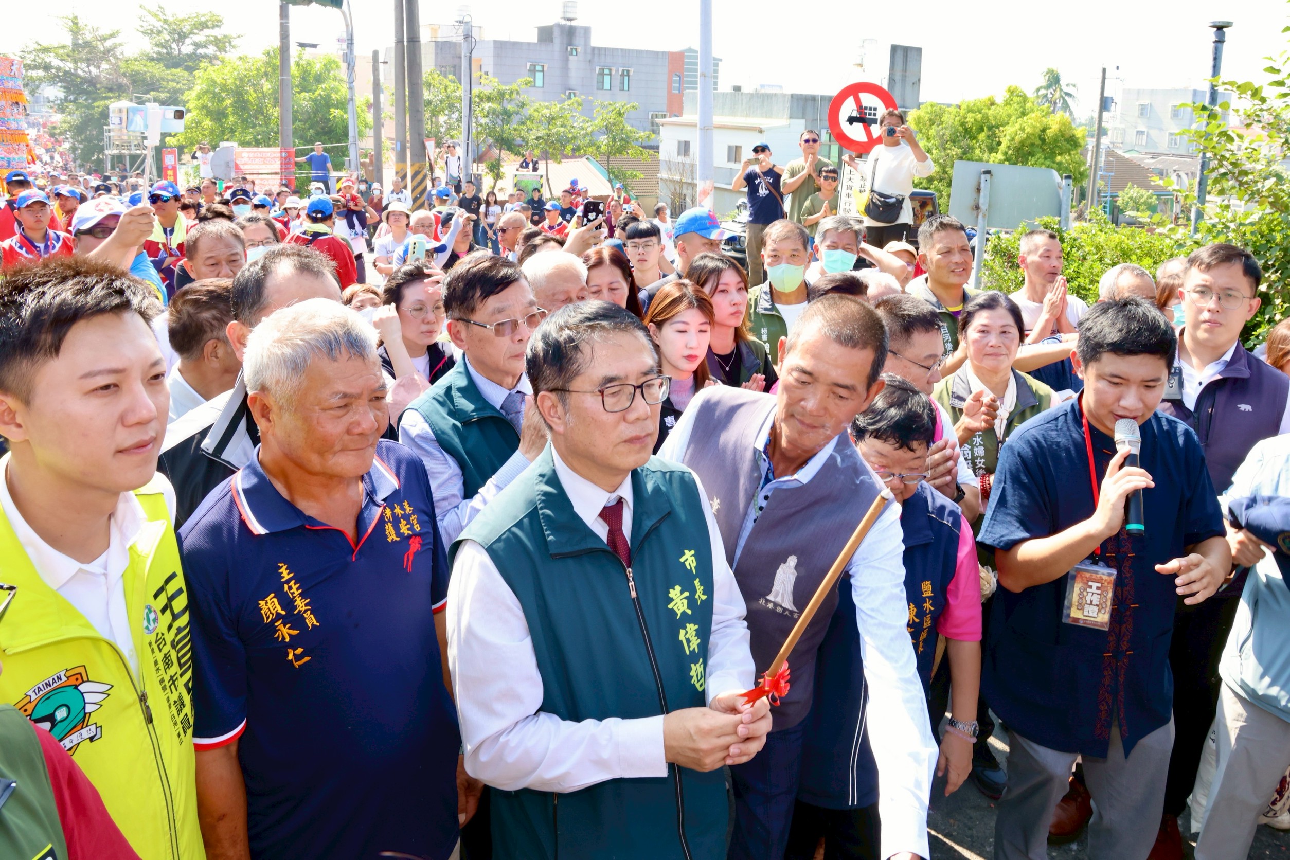 雲林北港朝天宮重啟「南都巡歷」傳統活動,循古禮南下至台南府城展開遶境活動,今(16)日第一站入境鹽水區,台南市長黃偉哲親臨現場接駕,此次更由具有深厚歷史意義的「黑面三媽」聖駕擔任主巡,距離上一次同樣形式的巡歷,已相隔超過百年,是難得一見的歷史性場景。