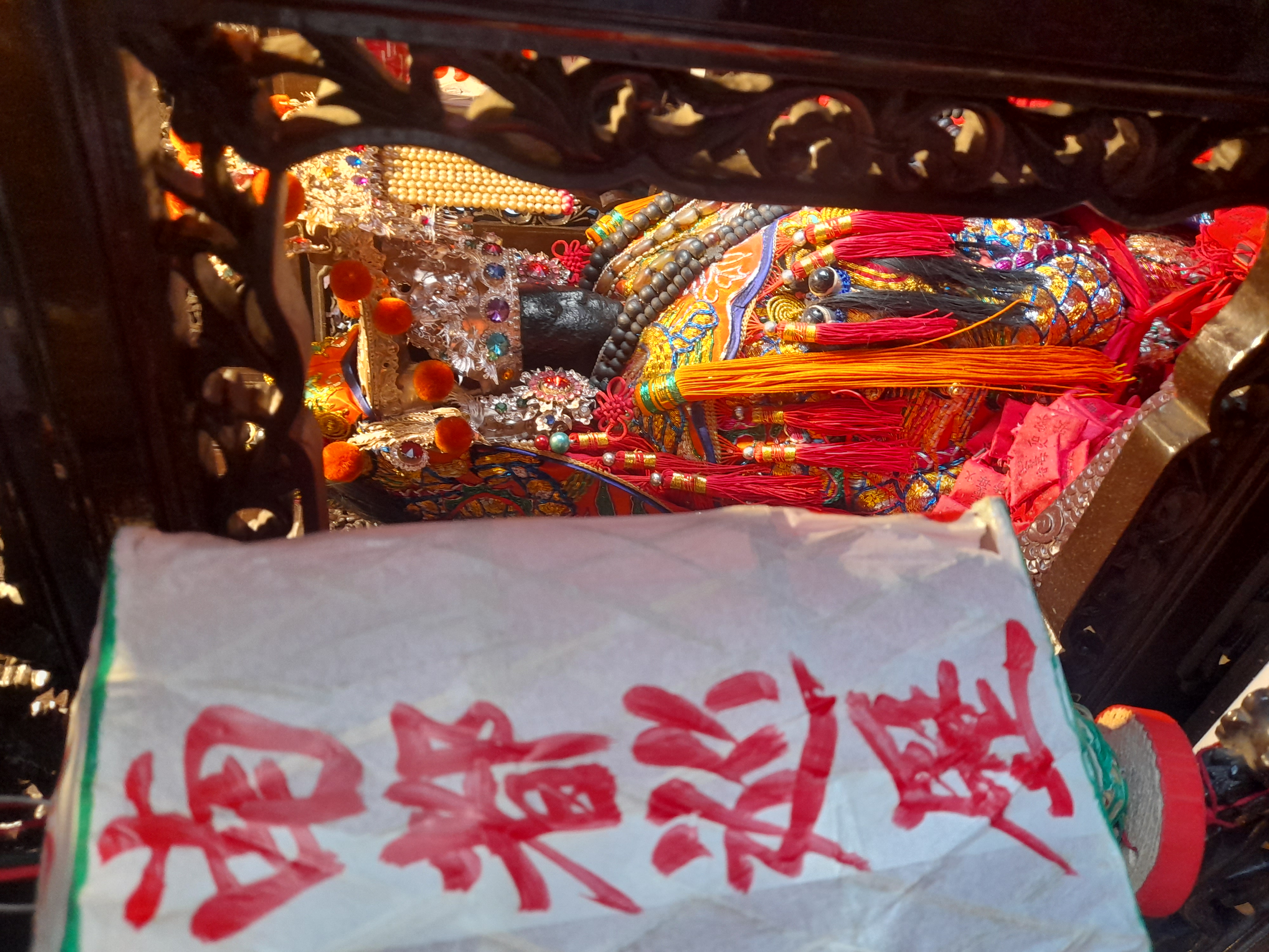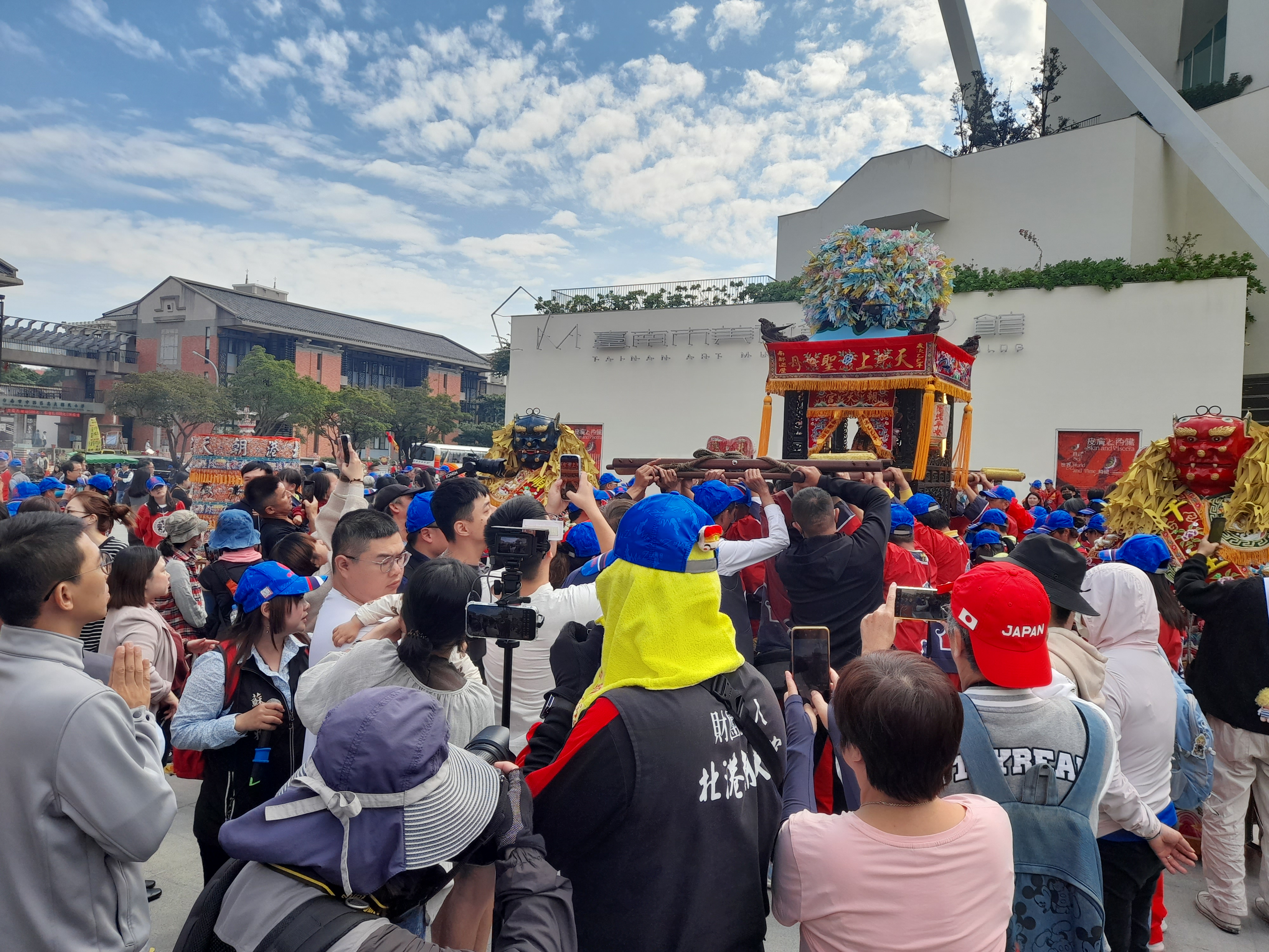 連日跟隨參拜信徒手拿「香火平安符及轎錢」虔誠跟媽祖訴說心願,然而廟方當初雖考慮交通阻塞,特公告在參拜廟宇不提供信徒鑽轎,但今天中午廟方趁陣頭人員在臺南市美術館二館休息時,貼心特別開放給等候參拜信徒鑽轎保平安,信徒紛紛表示,媽祖真是慈悲,感動落淚。