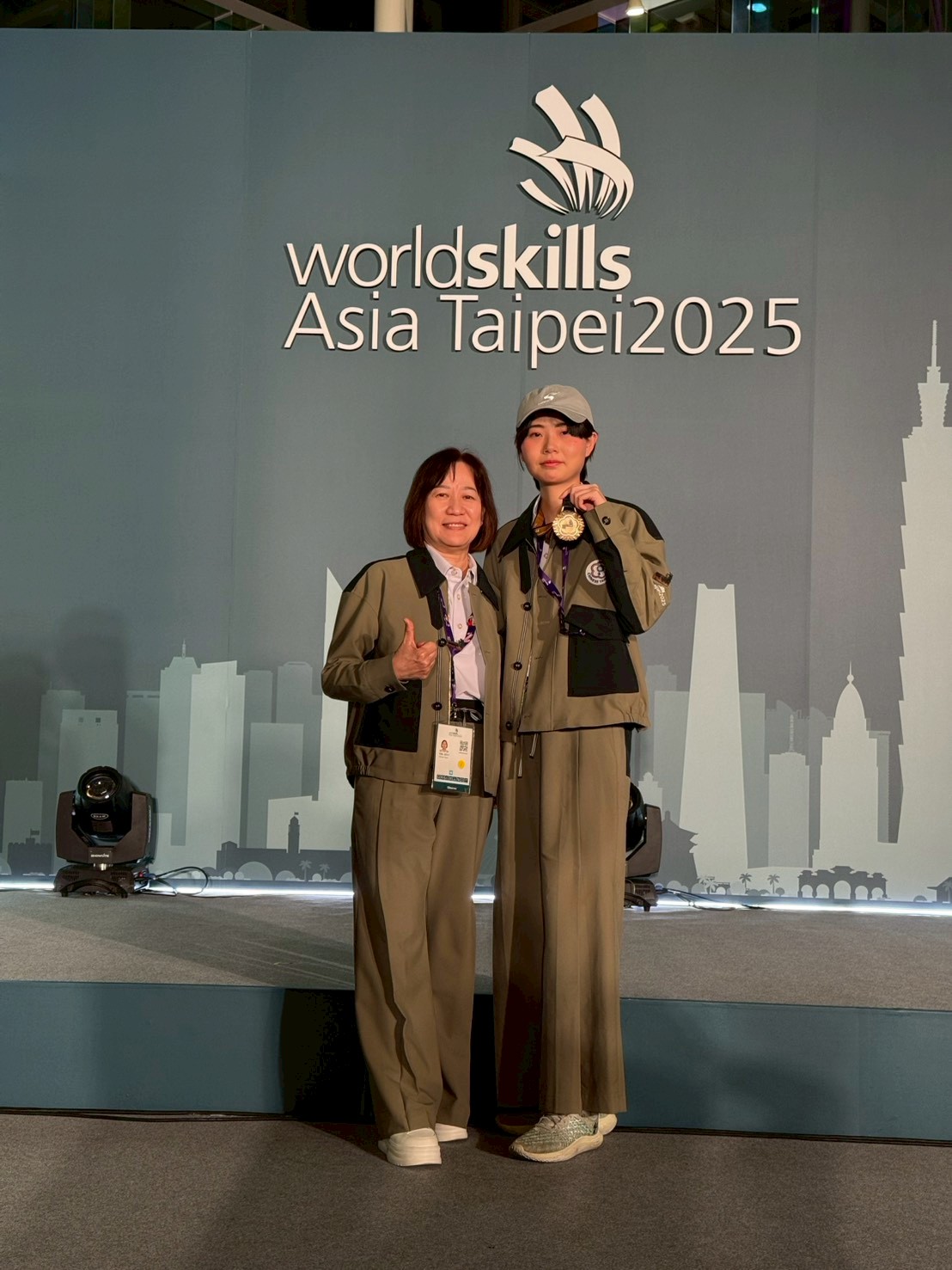 台南應用科技大學服飾設計管理系大四學生蕭妤珊,畢業於三民家商服裝科,高中時榮獲全國家事類技藝競賽服裝設計組第三名,上大學後大一參加第53屆全國技能競賽獲服裝創作組佳作,大二時獲得第54屆全國技能競賽服裝創作金牌,經過競爭激烈的國手選拔賽,大四成為正選國手,在這次亞洲賽中脫穎而出,奪下服裝創作職類金牌,以卓越工藝與穩定台風獲得評審高度肯定,成功為台灣技職教育寫下耀眼紀錄。她個人以亞洲賽金牌為起點,亦將在2026年9月代表台灣前進上海,挑戰國際技能競賽,與35國選手同場競技交鋒,期望再創佳績。