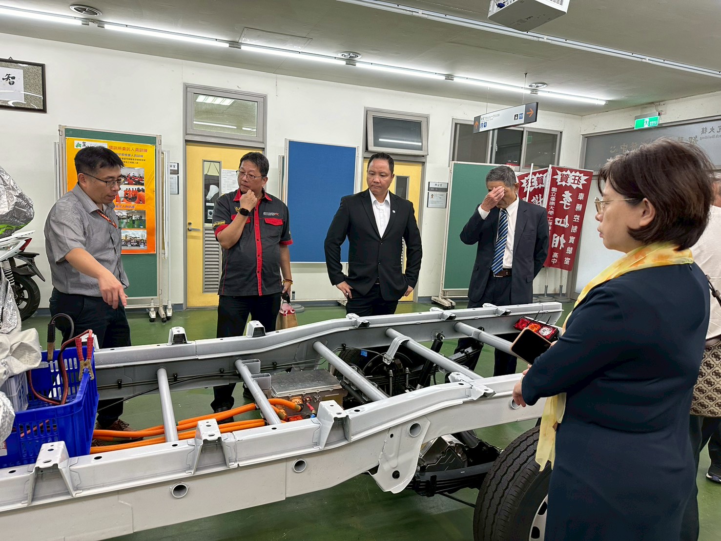 本次活動由崑山科大產學研團隊與金屬工業中心共同策劃,以「產學共育、智慧創新」為主軸,全面展現技職教育與車電供應鏈高度整合的最新成果,現場安排產線導覽、技術展示、企業交流與茶會座談,多面向呈現電動車晶片與車電模組的研發量能與智慧製造技術。該次亦特別邀請國立臺南高級海事水產職業學校與臺南市私立慈幼高級工商職業學校等多所高工職代表參與,使企業與學校師生、技職端教師得以就電動車產業趨勢、智慧製造發展、車用電子技術、整車與模組維修能力,以及車電人才培育需求進行直接交流。這不僅深化跨教育層級的產學接軌,也有效促進技術經驗的分享、職能導向的對話與人才培育的雙向鏈結。