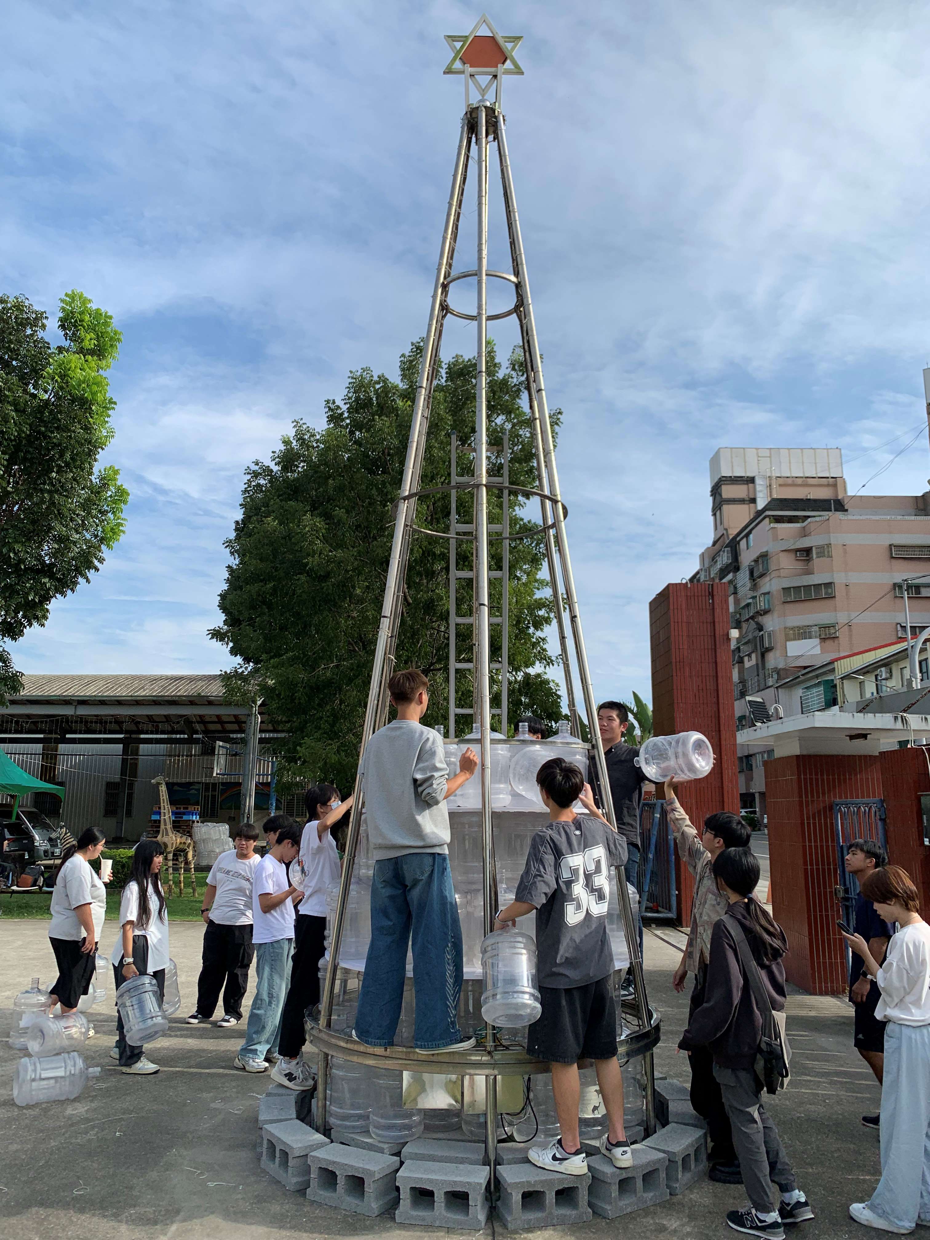 指導老師吳基正表示,設計是公共責任,也是與自然的持續對話,今年作品的核心不在「造型」,而在於「反思與回應」,水瓶是現代文明最普遍的現成物,也是我們對水資源依賴的象徵,當它被重新建構為一棵樹,它就從日常垃圾轉化為生命容器,提醒我們資源有限,生命循環無限。他強調,在創作中學生必須親手處理材料、調整顏色、規劃結構、測試安全,並在教會場域中反覆驗證設計的可行性,期待學生理解,設計是關於人、關於環境、關於責任,作品完成並不是終點,而是與社區、與環境共同調整的開始。